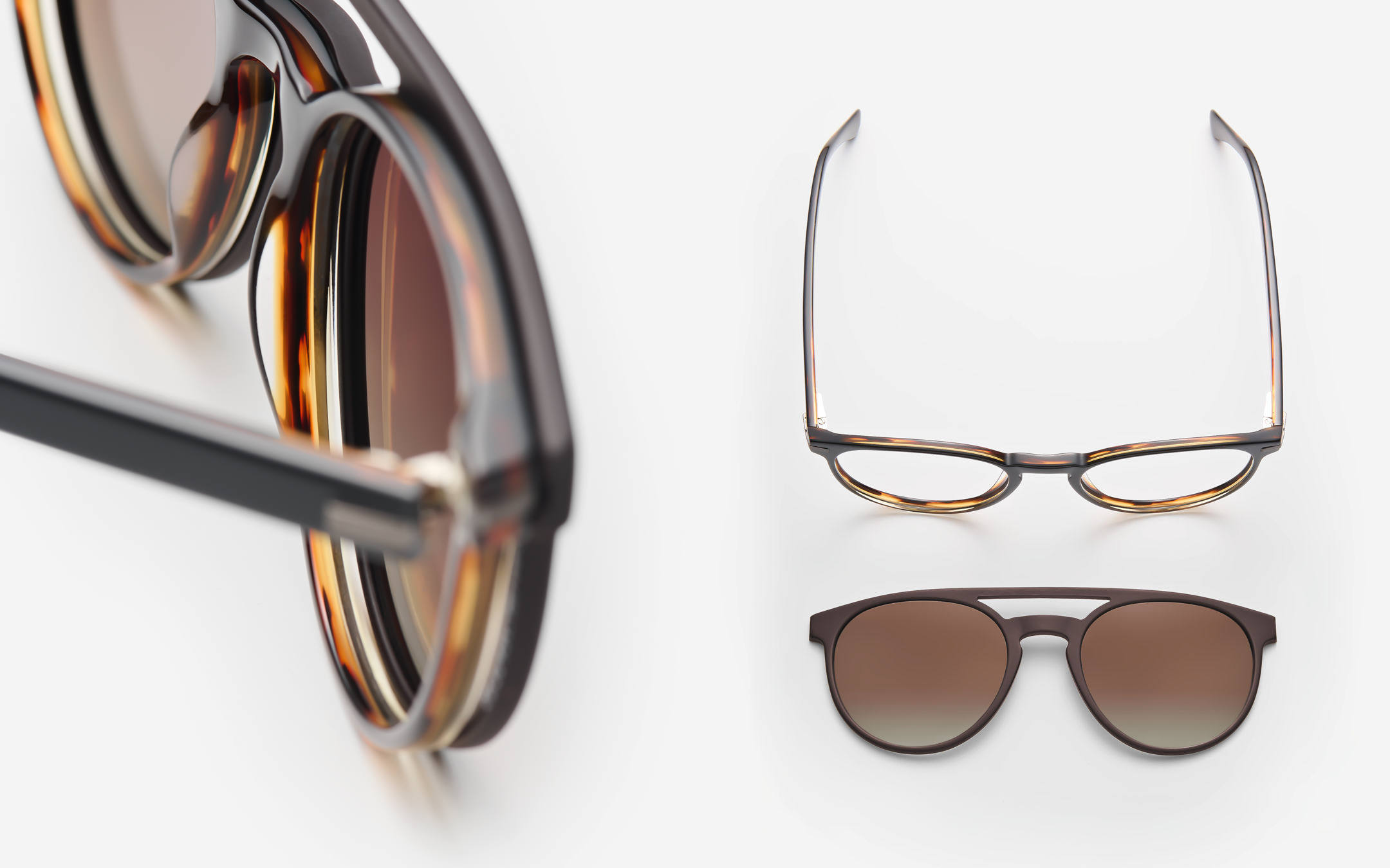 NEUE FREIHEITEN FÜR FREIGEISTER — MIT DEN CLIP ONS VERWANDELN SICH DIE ZEITLOSEN, GRIFFIGEN AZETATMODELLE MÜHELOS IN STILSICHERE SONNENBRILLEN. PANTO 863049 UND KARREESCHEIBE 863050 BRINGEN JEWEILS DEN FORMAL PERFEKT ANGEPASSTEN SONNENSCHUTZ MIT. DIE MAGNETE DER CLIP ONS SORGEN NICHT NUR FÜR VERBINDLICHKEIT, SONDERN FUNGIEREN AUCH ALS GEKONNT INTEGRIERTER DESIGNAKZENT. CHARAKTERSTARKER LOOK UND MODERNES MATERIAL-STATEMENT.